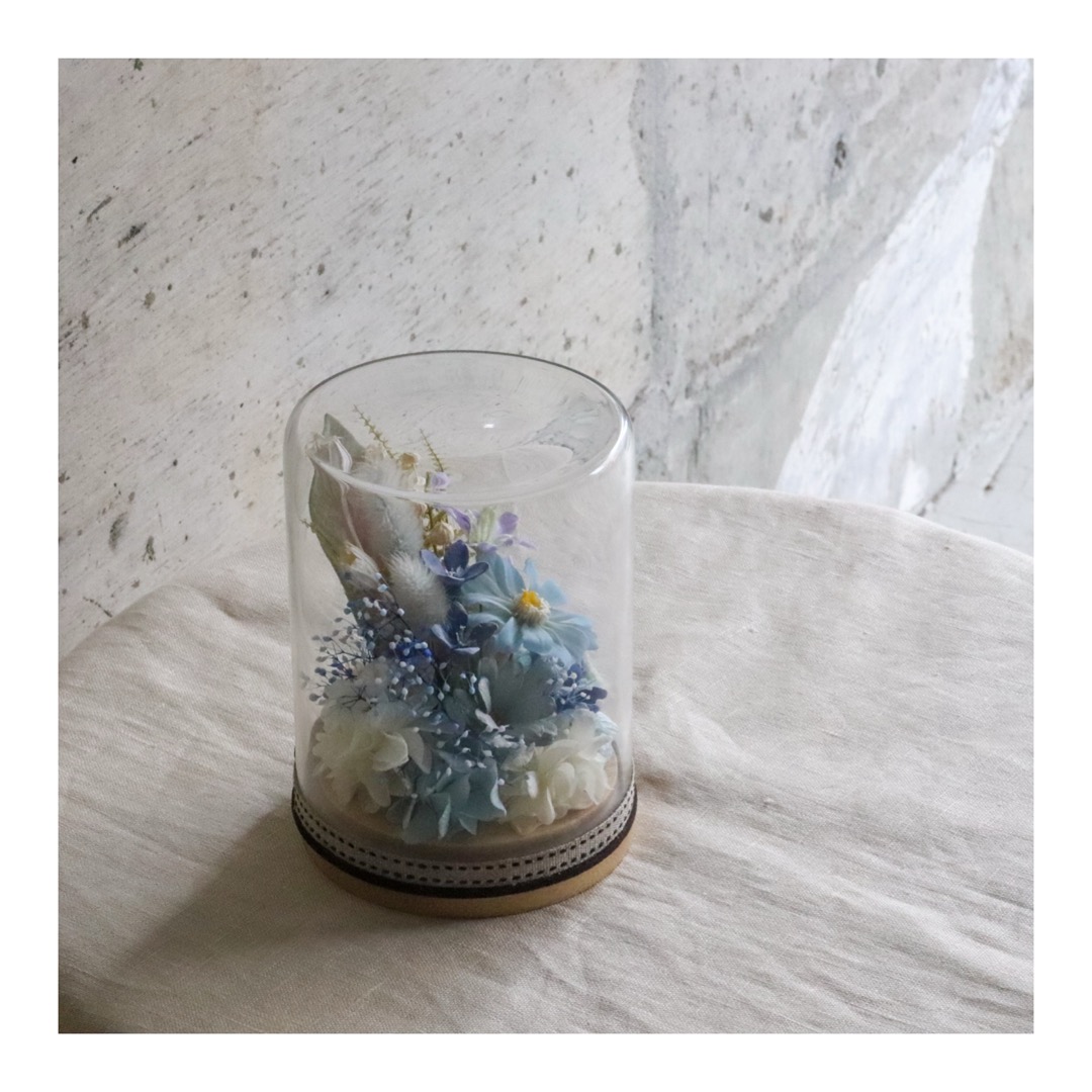 水色系のガラスキャニスター入りでとのご依頼でした。