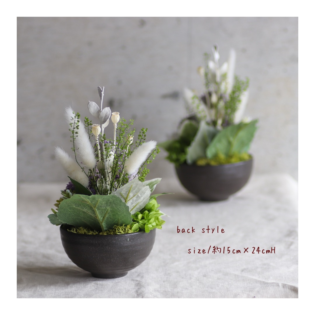 | ご注意点 | プリザーブドフラワーは特徴上、花びらに小さな亀裂が入る場合がございます。 撮影時の条件により、画像と実際の色が商品によって違う場合がございます。 梱包には細心の注意をはらっておりますが、自然素材のため、花びらの切れや多少の葉こぼれ等がある場合がございます。 画像で判断できないキズ、汚れ、撮影時に見逃してしまったダメージ等がある場合がございます。 一緒に撮影されている小物はディスプレイとして使用している物です。 |